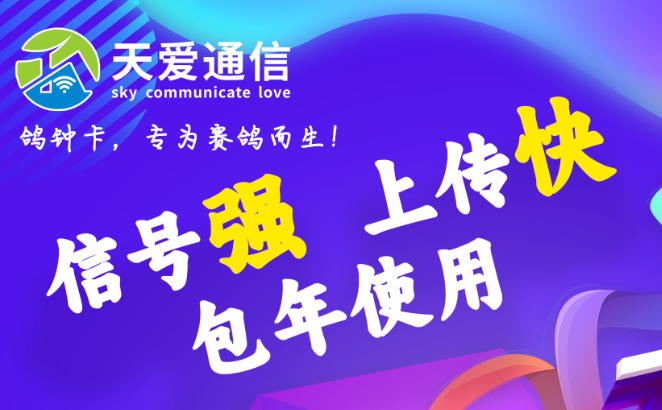 天愛通信定制的鴿鐘卡自2019年推出并應用于賽鴿行業,鴿鐘卡采用數據流量包年形式發售,將資費降到最低,免月租費,全國通用。該卡專門服務于參賽鴿友,適用于多品牌電子鴿鐘掃描設備。鴿鐘卡,專為賽鴿而生。 目前,鴿鐘卡已有來自北京、山東、天津、河北、江蘇、河南、安徽、上海、廣東等全國16個省、自治區、直轄市超萬名鴿友使用。